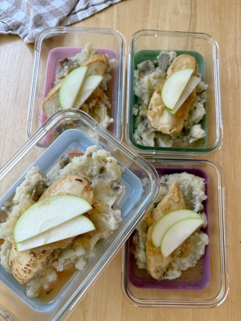 5. Serve chicken over mashed cauliflower potatoes with sauce and apple slices.